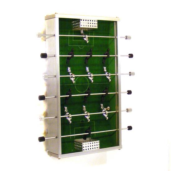 The product shown on the picture is a toy set of football game for two players to play together. It has a football court with six handles with a total of fourteen players.