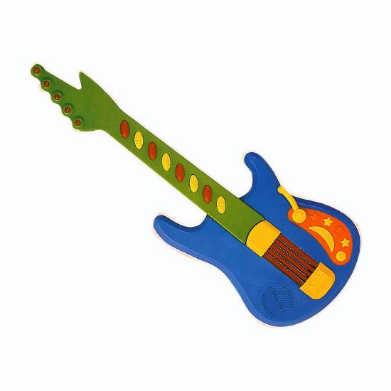 The toy guitar flaunts a quality construction in vibrant colors. The eight keynotes and three melodies offer unlimited joy and fun. This battery-operated toy guitar is a great choice for your little guitarist.
