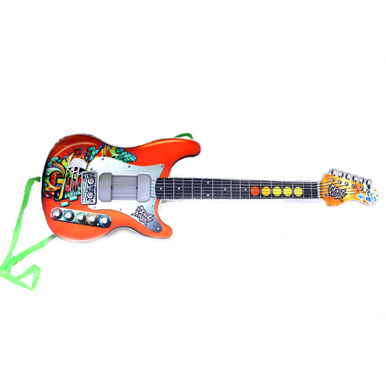 This toy guitar captures children's eyes with its cool-and-hip design. The vibrant colors and beautiful graphics are especially attractive. Let children enjoy the fun of performing with this rocking guitar.