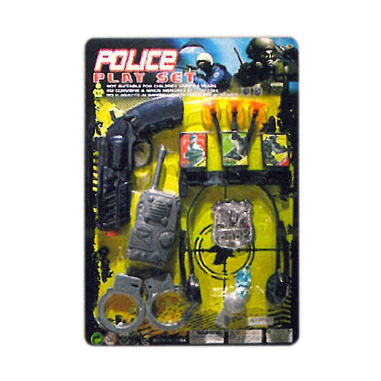 Featured is a police play set that comes with extensive accessories. Children can practice their shooting skills with the handgun, 3 bullets and 2 targets. The handcuffs and walkie talkie also provide added play value.