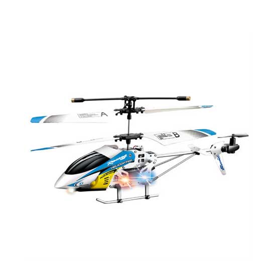 Displayed is a toy helicopter that uses remote control. Featuring a cool design, this helicopter has powerful propellers for a fast reaction. This fun helicopter is a good choice for passing time with family and friends.