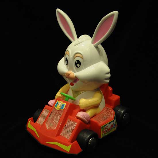 This presented toy kart comes with a cartoon bunny to add cute elements. It is installed with flashing light that appeals to little kids. This toy kart is a funny and lovely toy car for hours of entertainment.