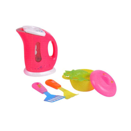 This is a mini toy kitchen set that comes with a toy kettle and assorted kitchen utensils. It is designed with music which lets children have more fun. The bright colors appeals to little children instantly.
