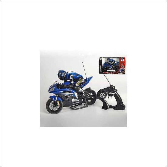 This toy is a remote controlled sports motorcycle with rider
