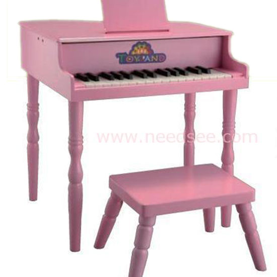 This toy piano is made out of wood for durability. It comes with an endearing pinkish design. The chair and the piano stand stably on the ground with four feet respectively.