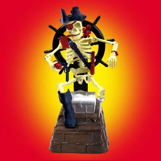This captain tremble skeleton set comes in a unique design catching people’s attention immediately. The square-shaped base allows this item to have a user-friendly stand-alone feature. This toy skeleton set is a nice addition for the rooms of bold people.