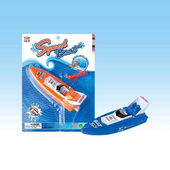 This presented toy boat features a speed-boat design. The catchy orange hue adds a vivid accent to the toy boat. This displayed toy boat will surely offer lots of fun.