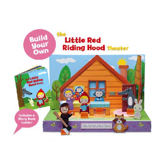 Displayed is a toy theater that comes in the theme of the Little Red Riding Hood. Made of high quality paper, this theater is easy to build and fun to play with. With colorful designs, this toy theater is a good choice for children and family.
