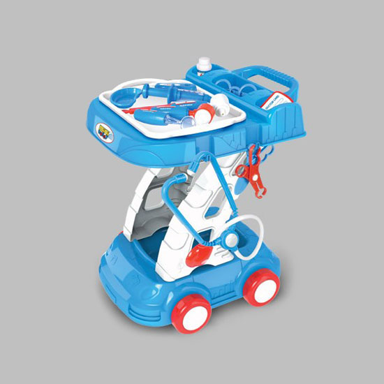 This toy trolley is ideal for little kids to play with. It boasts a robust housing for a long service life. This cute toy is designed in blue, red and white for an eye-catching look.