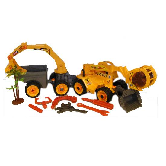 As shown are toy trucks which are best for gift for kids aged 3 or above. Accessories like tools and trees are included for more fun. These toy trucks allow kids to play alone, with friends or parents.