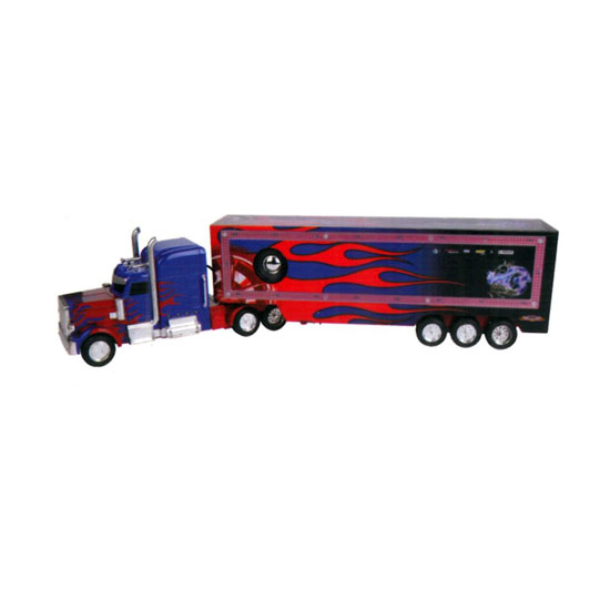 This toy truck appeals to children instantly with its colorful look. It is finely printed with red and blue patterns. This toy is designed with lights and music for enhanced fun.
