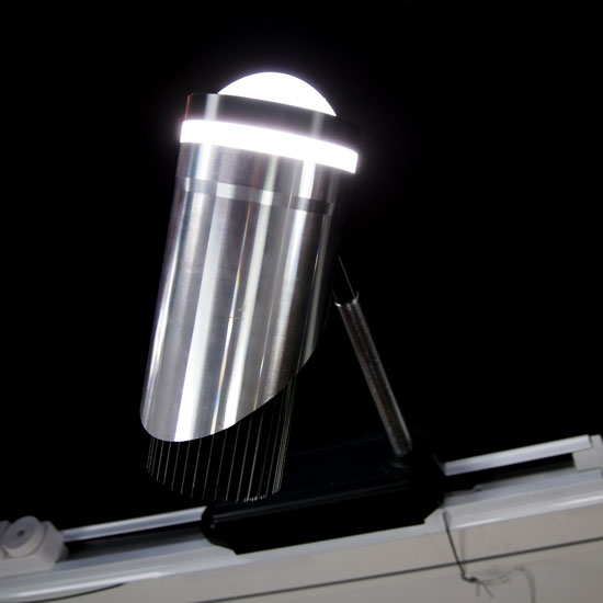 Shown is a track light coming with a metallic housing for better protecting the bulb. The durable light offers smooth and balanced light distribution. This artfully designed track light makes a wonderful lighting source for indoor use.