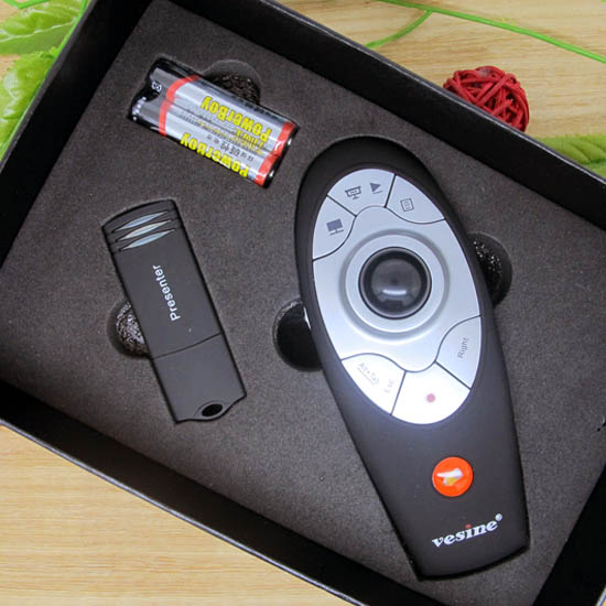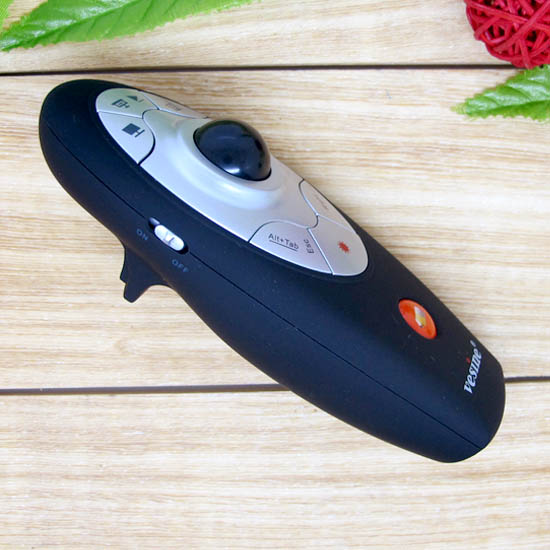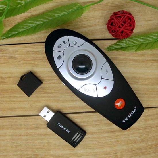 Showcased is this red laser pointer with a sleek black casing and silver button panel. This handy laser pointer features a black track-ball mouse in the middle, convenient for instant changes. Together with the window change, instant media center/ player access function, your presentation would definitely be a smooth and perfect one.