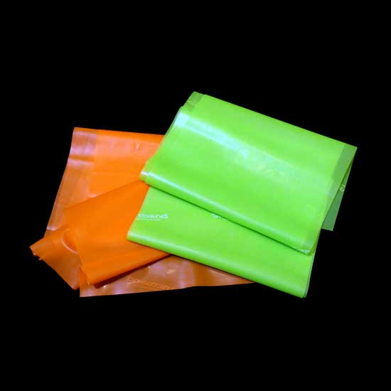 These resilient training bands are made from natural latex. The functional training bands can strengthen, tone, shape, and rehab muscles. They are available in green and orange colors for your selection.