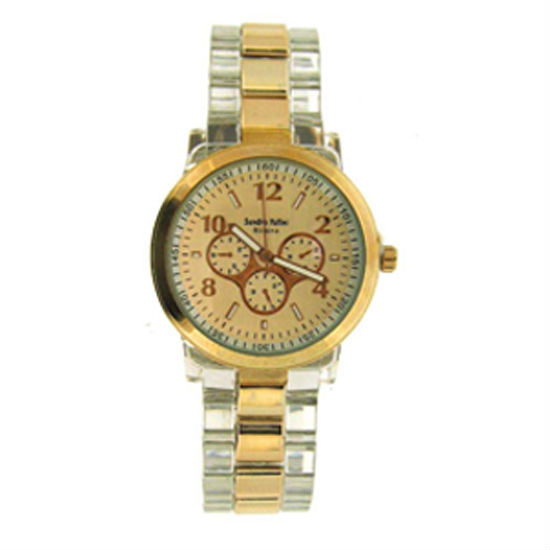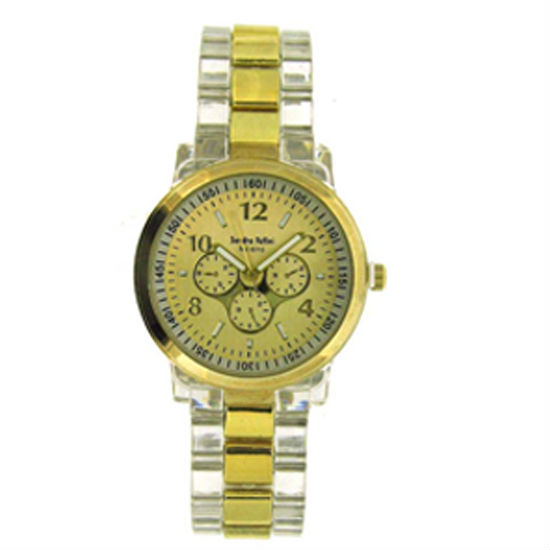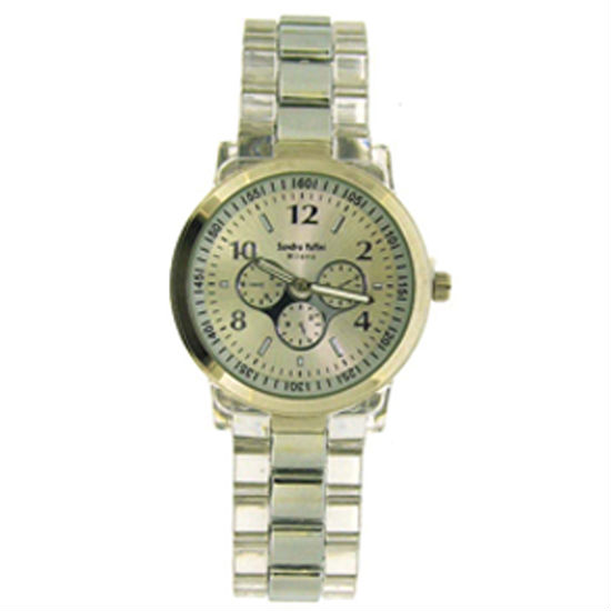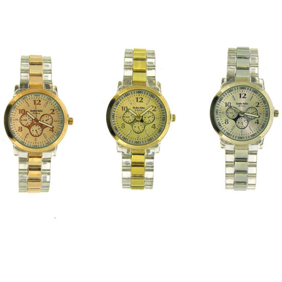 Beautiful transparent plastic banded watch with metal alloy links and case.