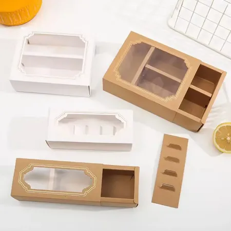 Transparent Window Macaron Packaging Box Small West Point Cardboard Box Bronzing White Foil 5/10 Biscuits Food Grade Paper Sushi