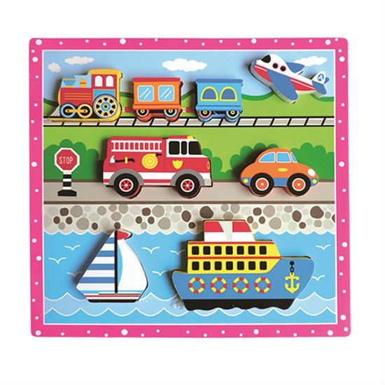 This is a set of finely made chunky puzzles. With bright vivid colorings, the puzzle is featured in a theme of land, air and sea transport. The puzzle pieces can fit well in little hands for easy playing.