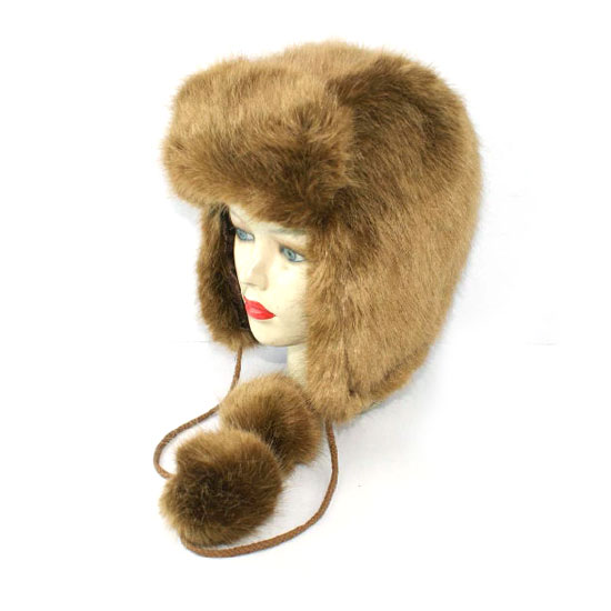 This trapper hat features beautiful faux fur in charming honey color. This fashionable accessory delights your look and keeps your head warm. Ball-shaped adornments lend a sweet touch to this hat.