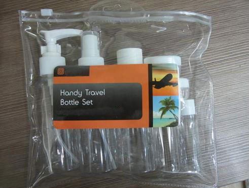 • 1pc 100ml PET bottle with lotion pump, 1pc 100ml PET bottle with sprayer, 1pc, 100ml PET bottle with press cap, 2pcs 20ml PET bottle with screw cap and 2pcs 8ml cream jar.