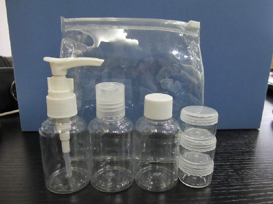 • 1pc 50ml PET bottle with lotion pump, 1pc 50ml PET bottle with press cap, 1pc 50ml PET bottle with screw cap and 3pcs 5ml cream jar.