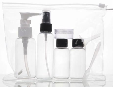 1pc 75ml with lotion pump, 1pc 80ml with sprayer, 2pcs 50ml with screw cap, 1pc 10ml cream jar, 1pc spatula and 1pc funnel.