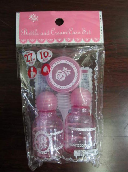 2pcs 27ml PET bottle with ball cap, 1pc 10ml cream jar, 1pc sucker.