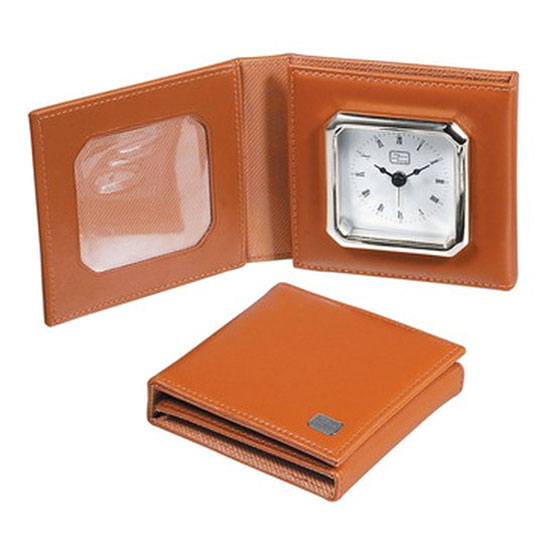 Call this novel timekeeping device a pocket clock for it comes in a real compact size. The design resembles a tri-fold wallet, in which a built-in square clock with an analogue clock face can be found. Made out of quality PU leatherette, this wallet looks supple and rugged to give a stylish protection for the interior mechanism.