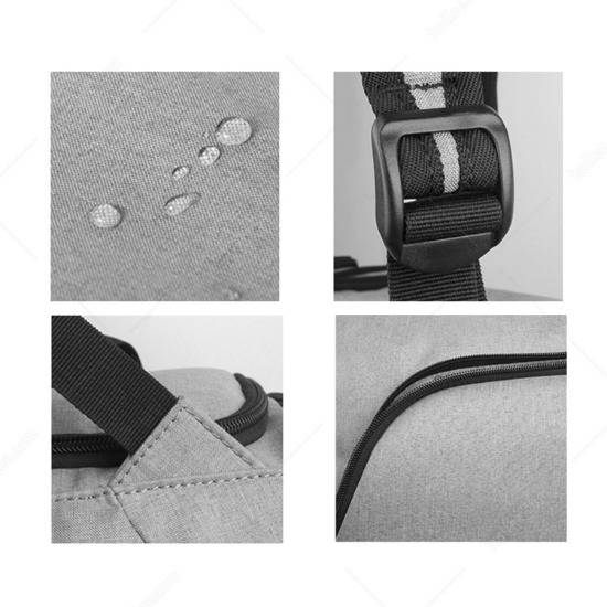 Front zipper pocket, drink holder, inner phone pocket, key holder.