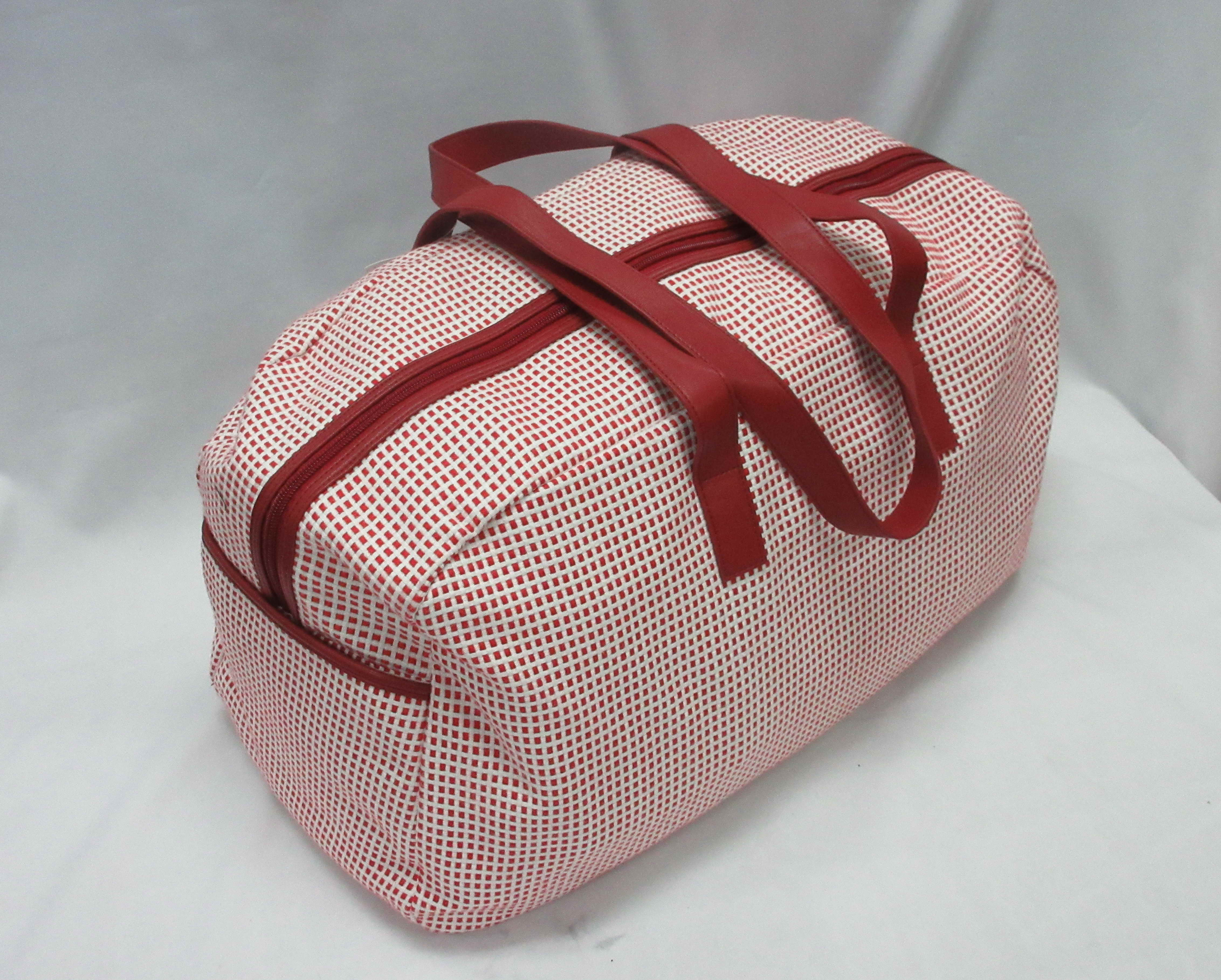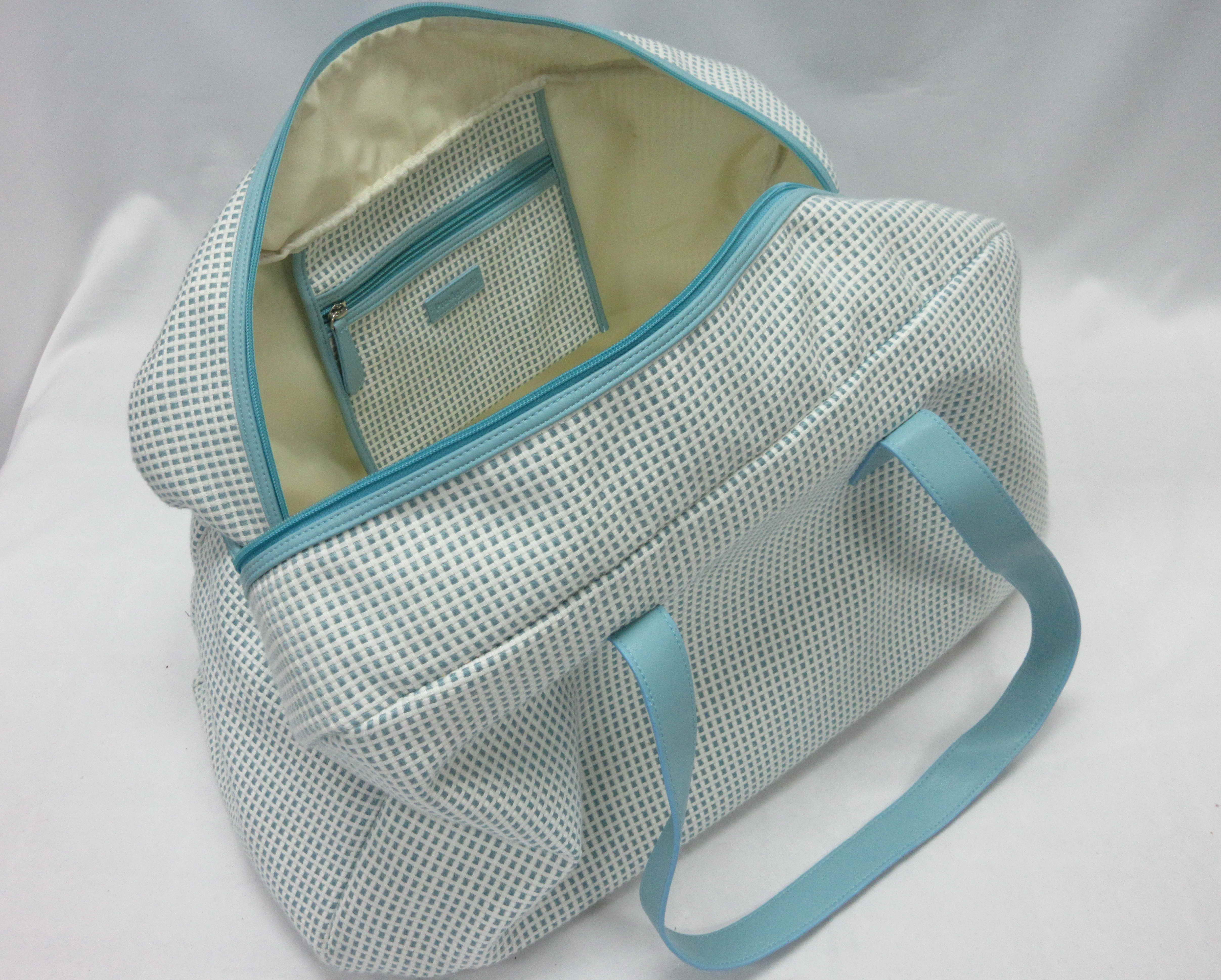 Made from polyester with check design, it features premium, soft leather handle and details, plus one internal zip pocket for small essentials.