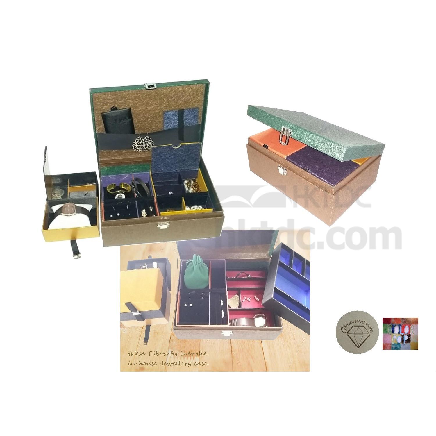 fit into our in house Jewellery cases, with 7 independent compartments and individual lids for small pieces; inter-clasp closure for safe journey