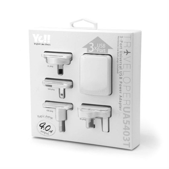 Traveloper - Interchangeable (VDE, BS, UL & SAA) 3-Port Universal USB Power Adapter