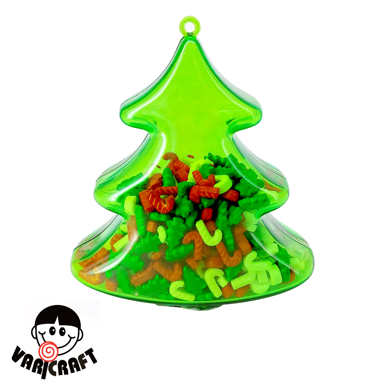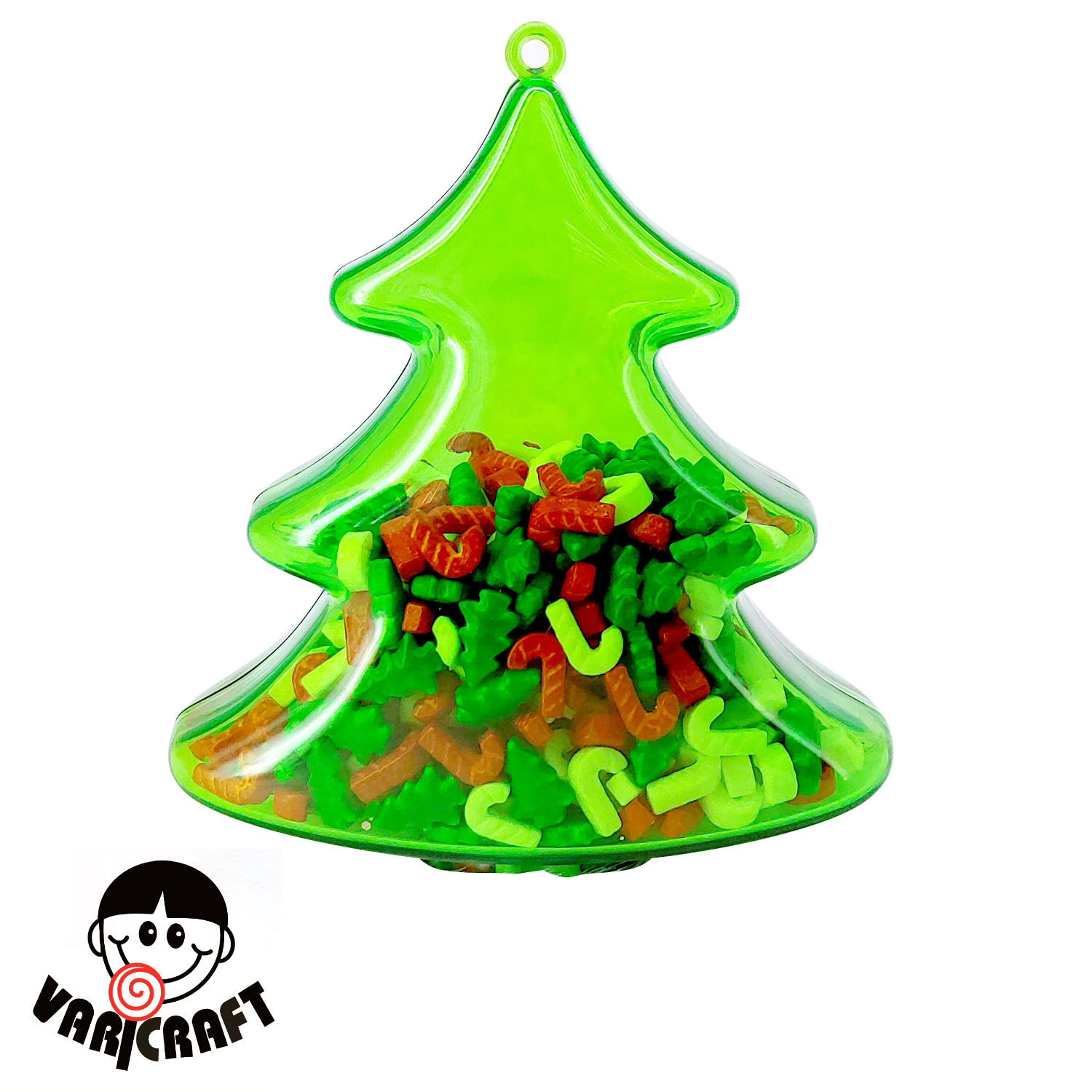 Features: Tree shape; Tree shaped; box; container; gift box; candy box; candy container; transparent; clear; rigid plastic packaging container; food grade; reusable; recyclable; with hanging ring; ornament; Christmas; decoration