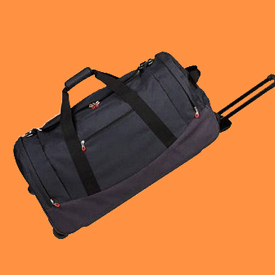 Displayed is a trolley bag coming with an allover black finish. It is fitted with sturdy wheels for easy and smooth movement. Made of 600D polyester, this trolley bag boasts rugged construction.