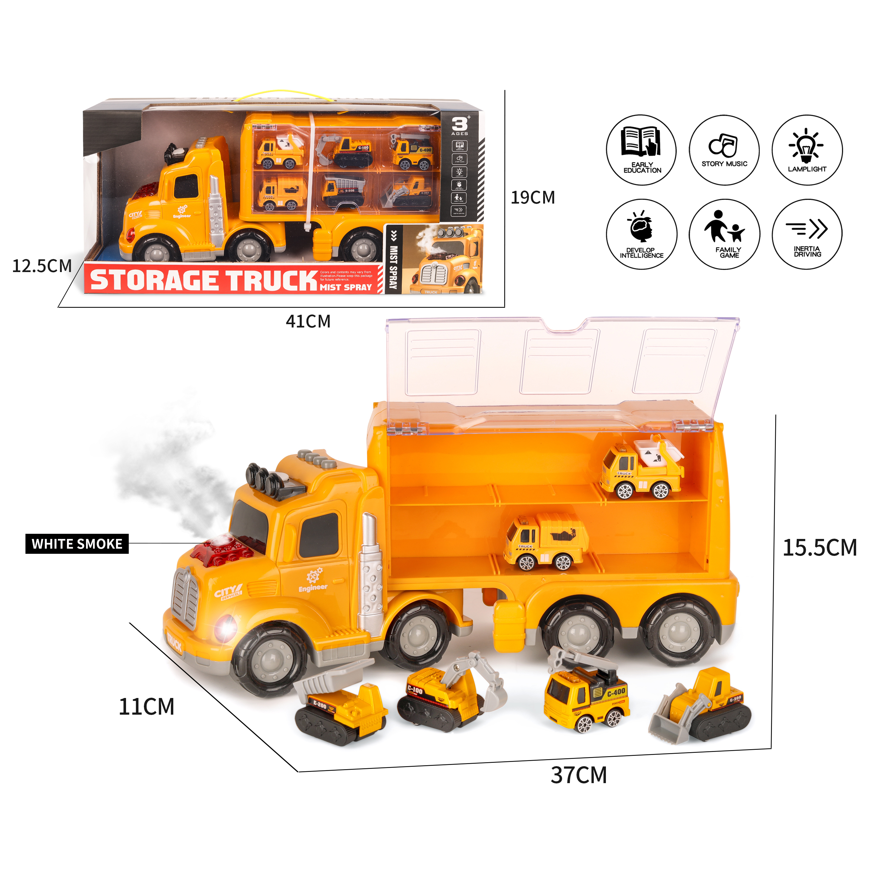 Truck with collection container W/Alloy Pull back Cars W/ Mist Spray feature,light and sound