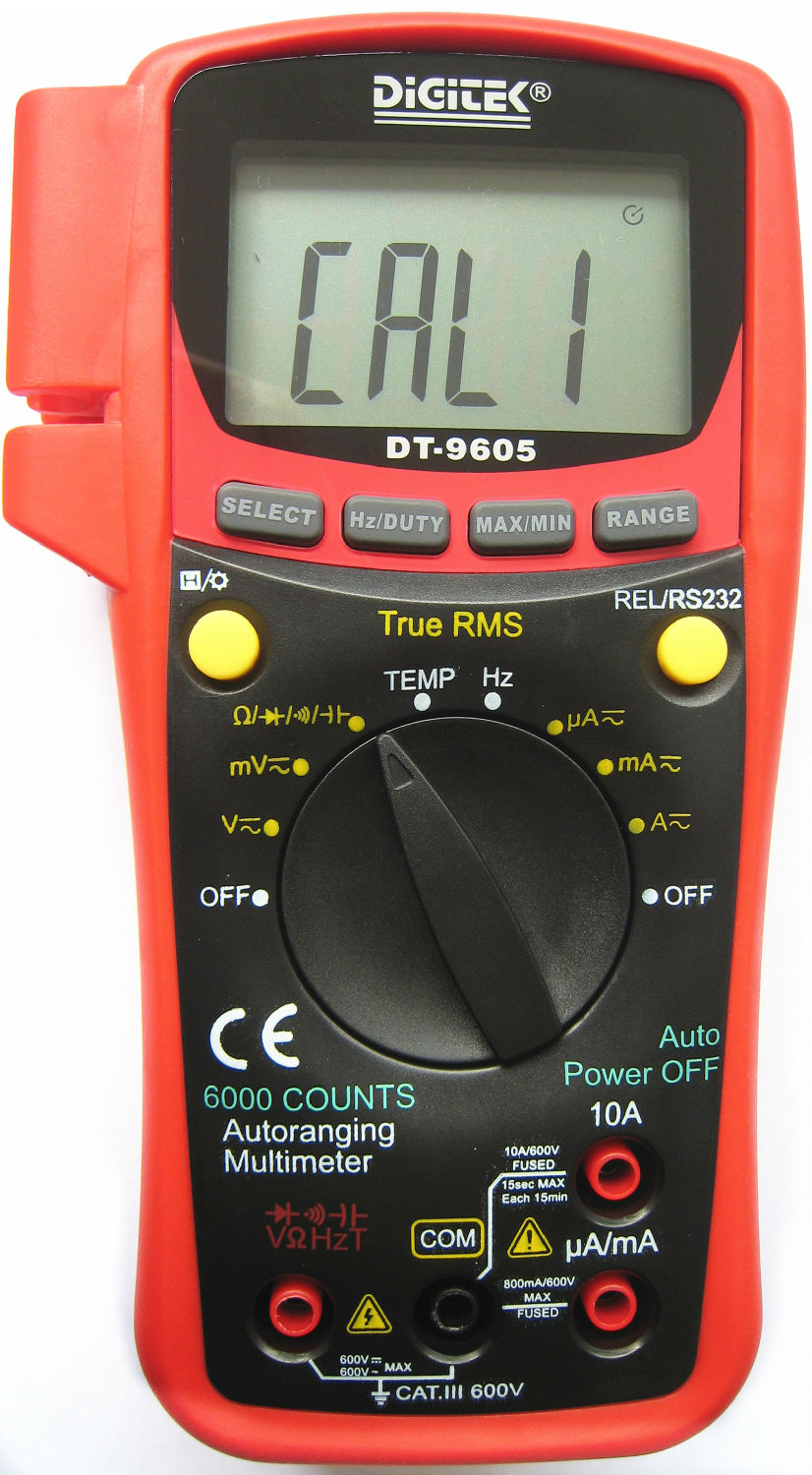 *Self-calibrating Multimter *Display: 6000 counts *Auto/Manual Range *Basic accuracy:0.2% *AC True-RMS Specifications: *DC Voltage:60/600mV/6/60V *AC Voltage:60/600mV/6/60V *DC Current:600/6000uA/600mA/6A/10A *AC Current:600/600/600mA/6A/10A *Capacitance:100nF~100mF