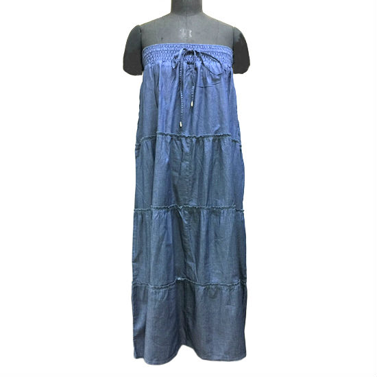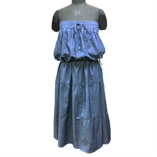 Ladies' woven denim 2in1 strapless dress / gathering
