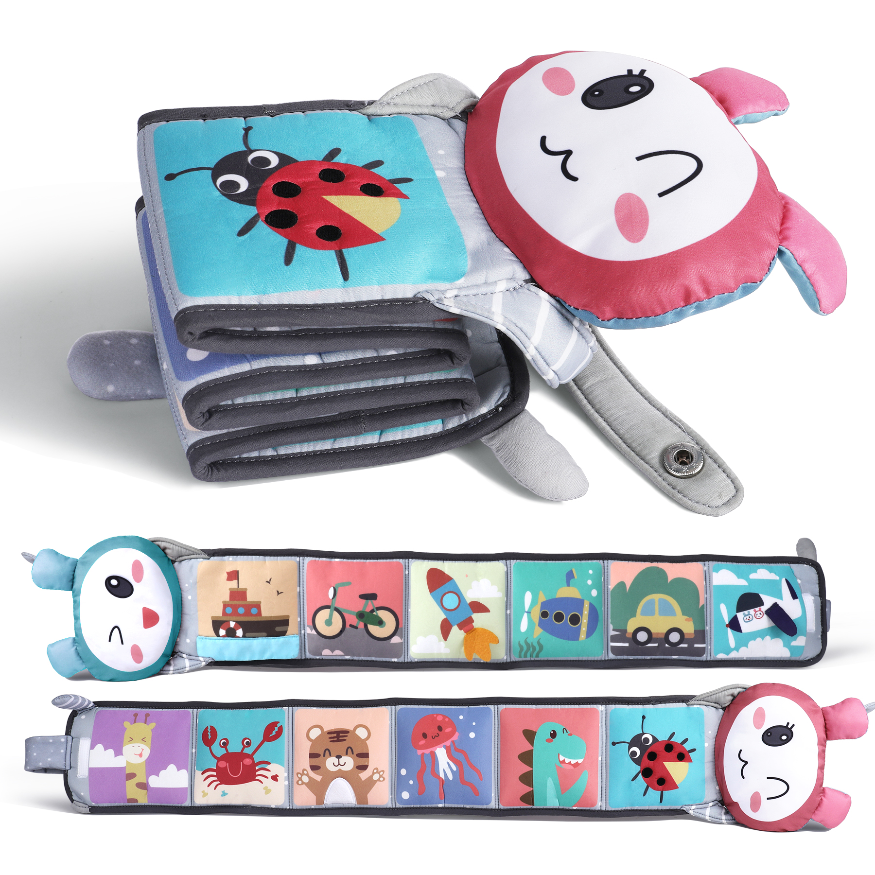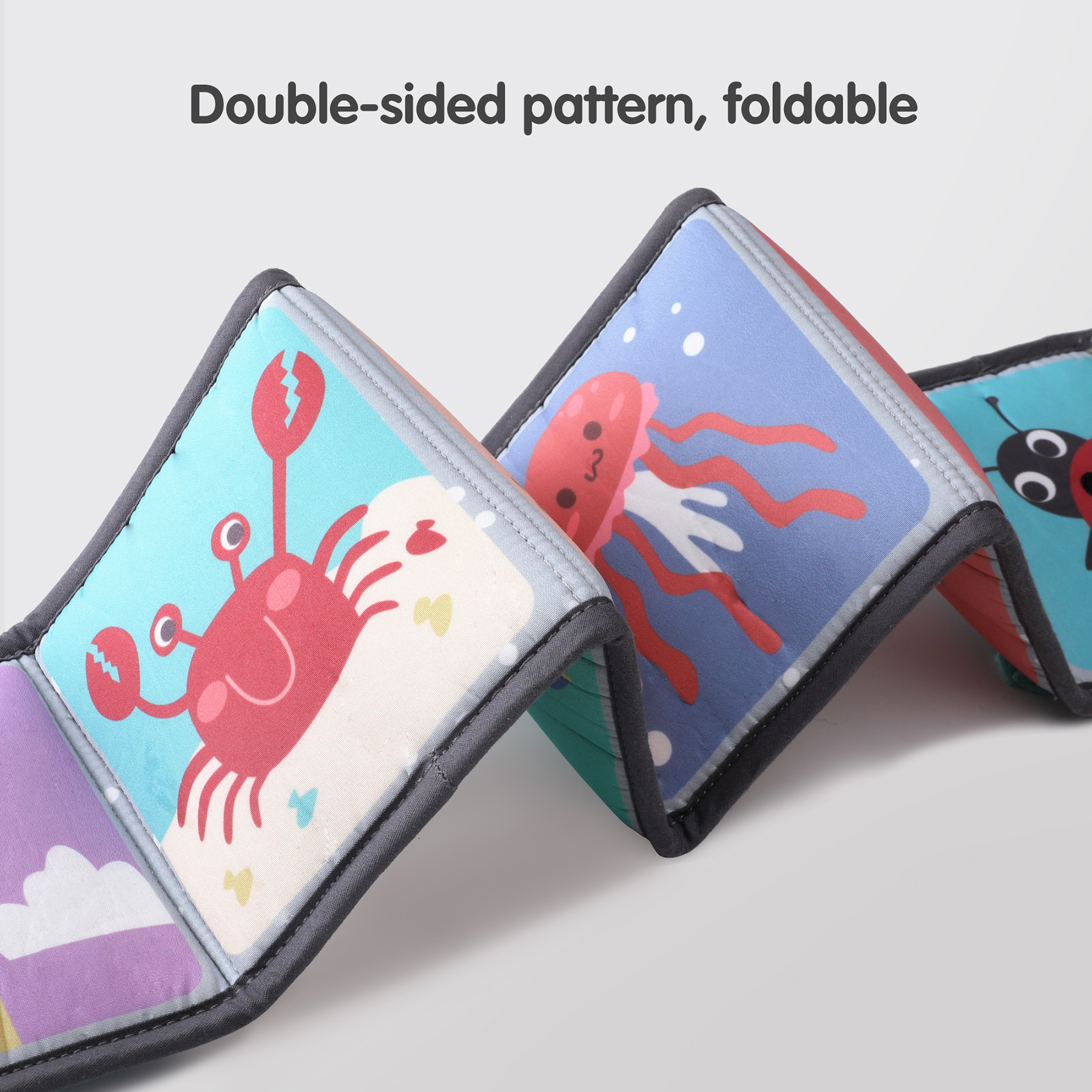 【Portable Design,Flexible Use】Double-sided flip-up design, the soft cloth book printed by different colors and patterns on both sides of. Animals, insects, and vehicles can teach the baby to learn different knowledge, understand the things of nature, realistic patterns and ring paper designed allows them to make a pleasant sound when playing, attracting the baby's fun, and stimulating their hearing ability and motor skills.