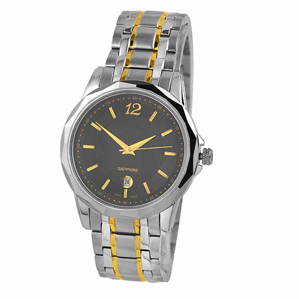 Tungsten and stainless steel watch with sapphire glass and gold plating