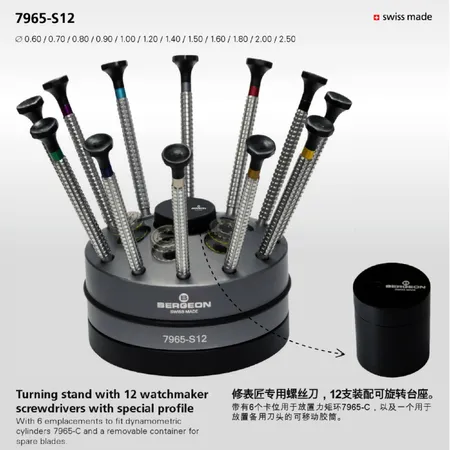 Turing Stand with 12 Watchmaker Screwdrivers in Special Profile