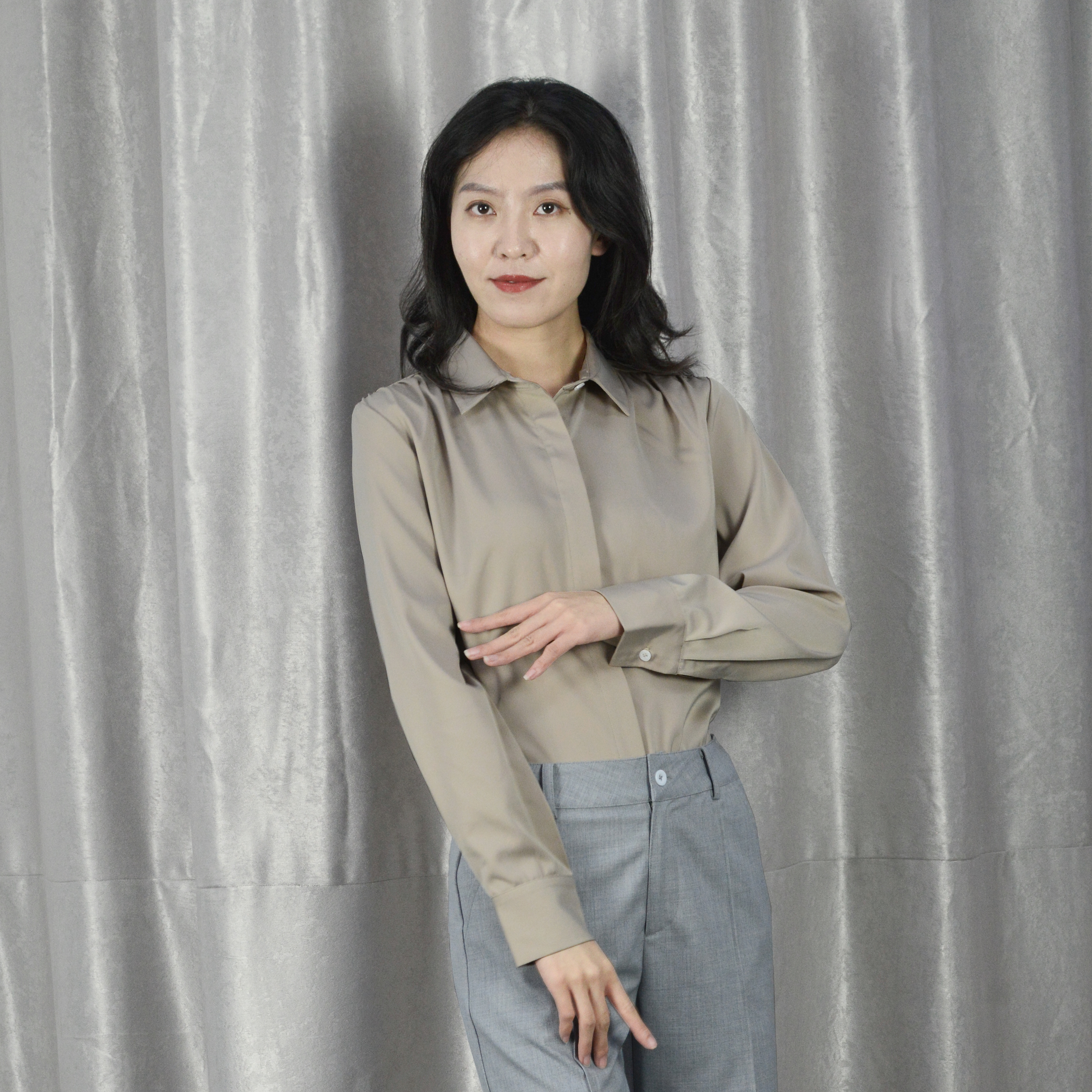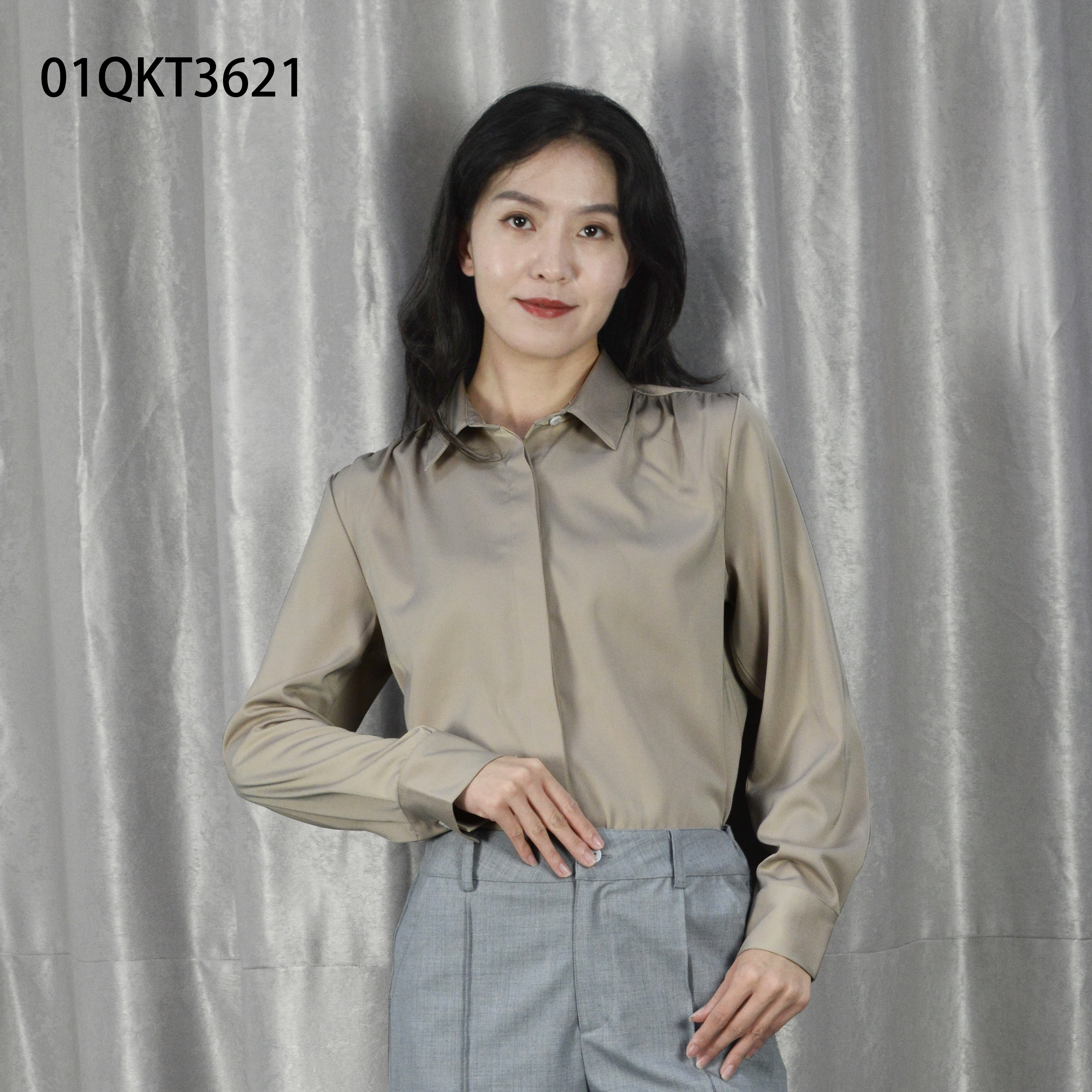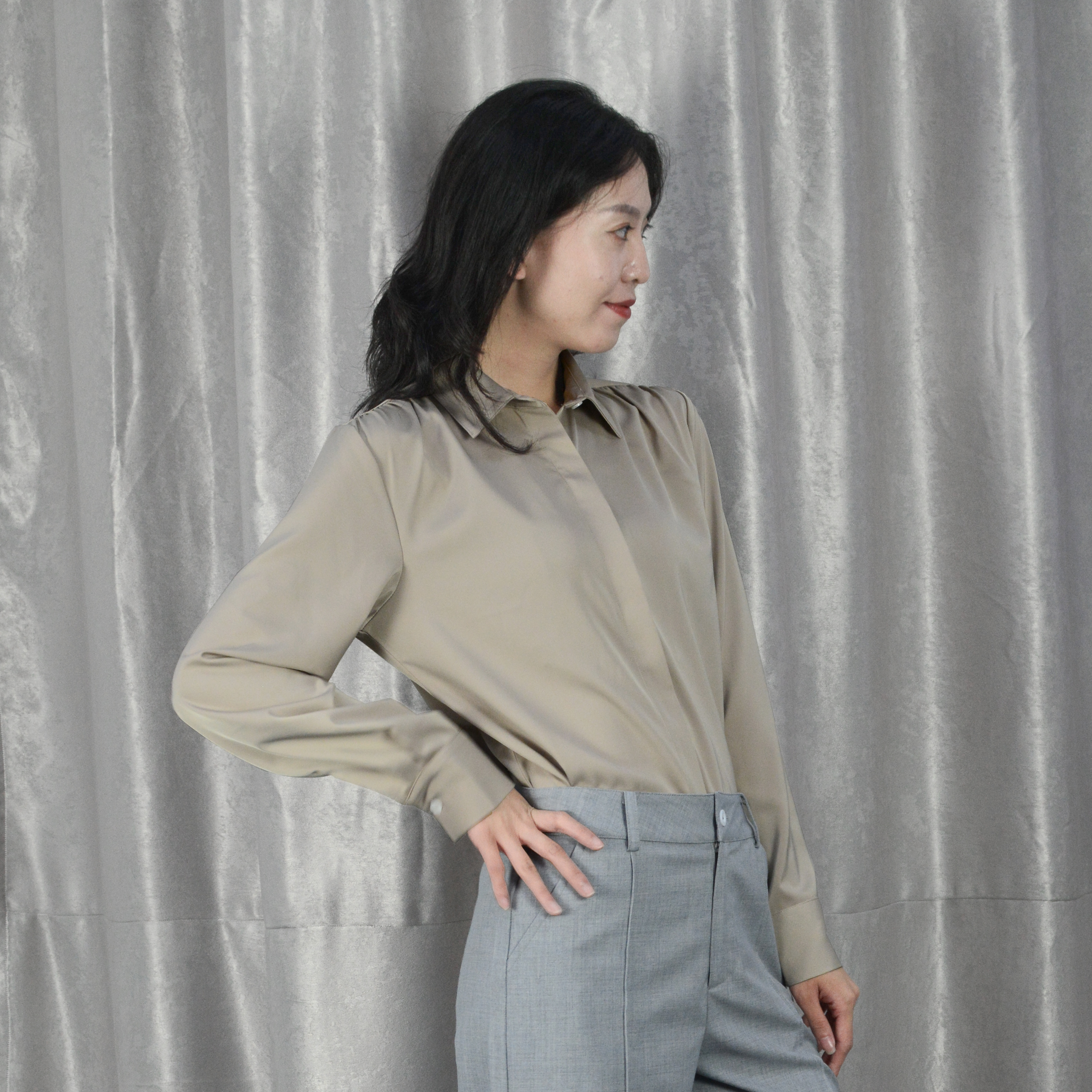 Turn-Down Collar Rushed Decoration Long Sleeve Plain Colour Smooth Hand Feeling Blouse