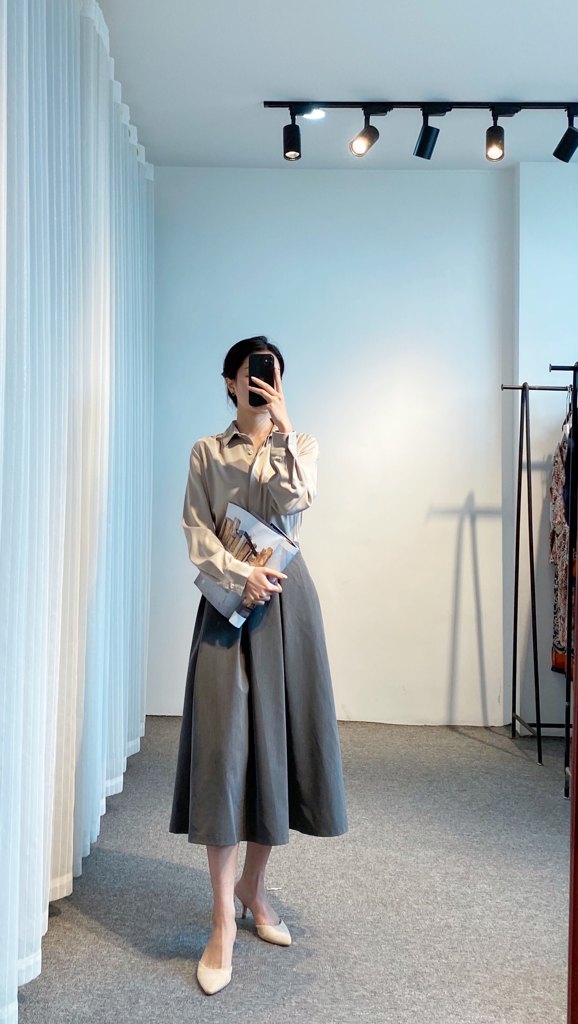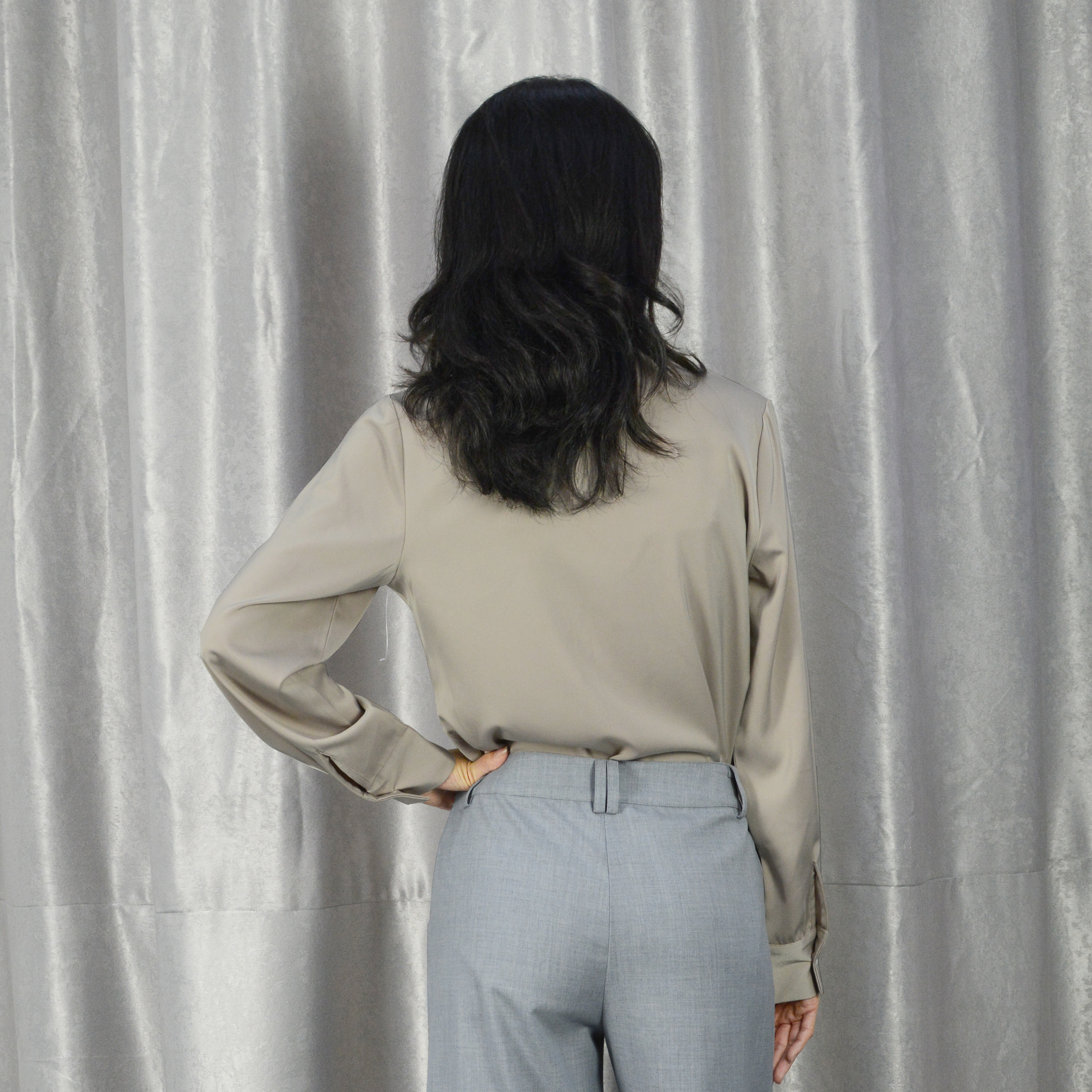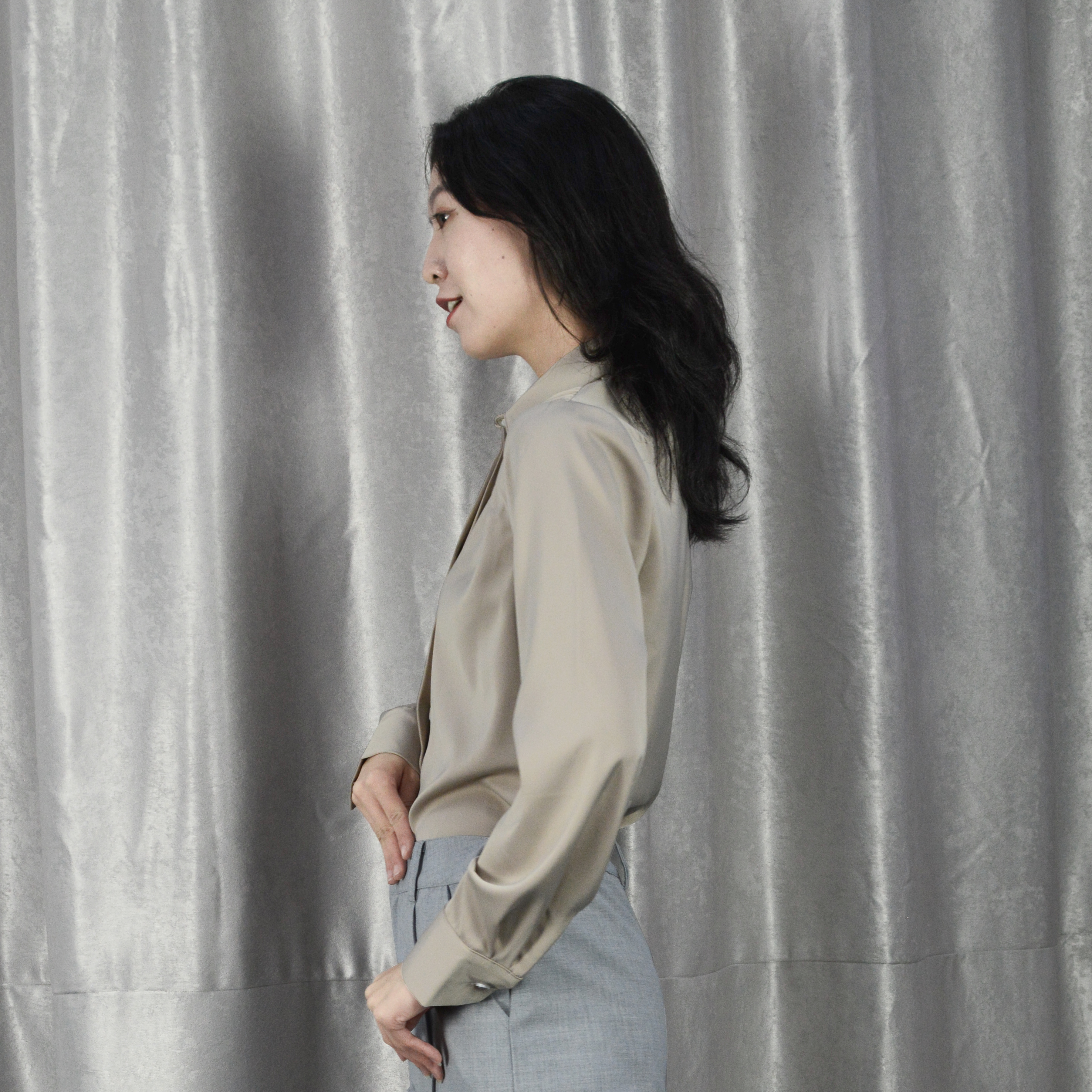 Turn-Down Collar Rushed Decoration Long Sleeve Plain Colour Smooth Hand Feeling Blouse