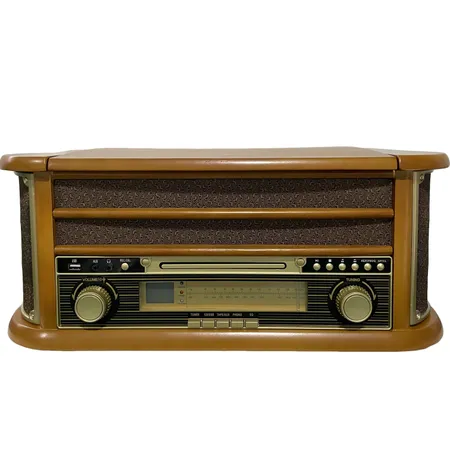 Wooden retro turntable player XRD-189B-99, please refer to the attached photos.