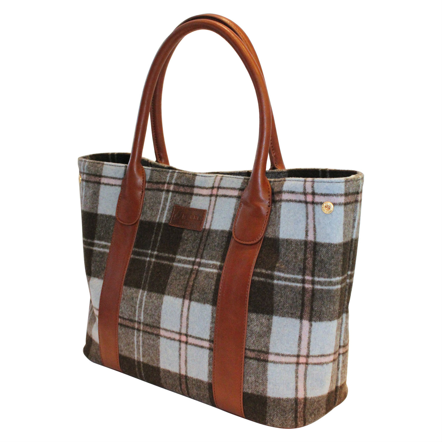 This is a tweed tote bag with size 43 x 27 x 13cm, made by wool fabric, PU and polyester