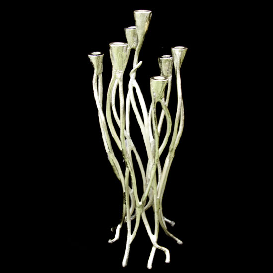 The candle holder here comes with 7 heads for holding candles. The design features a unique twining structure in an abstract curvy shape. The surface is plated in silvery to make it an exquisite decoration.