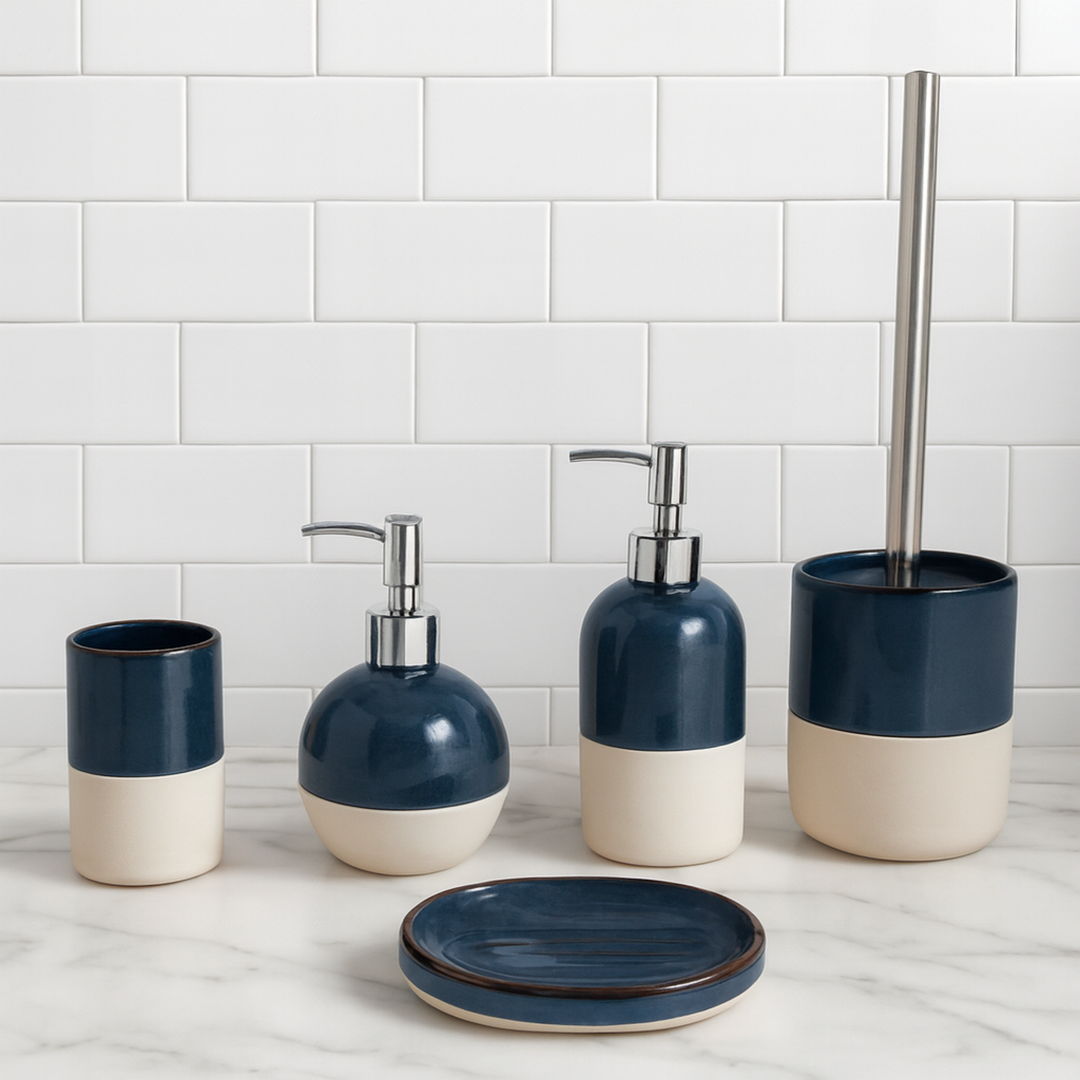 CERAMIC BATHROOM ACCESSORIES SET TWO TONE FINISH