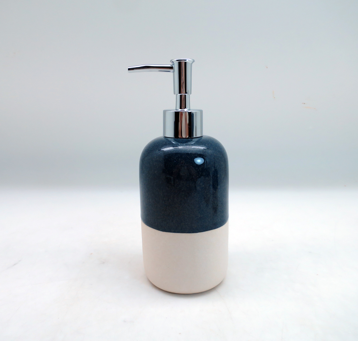 • Chrome Accents: Polished pump tops and brush handle add a sleek, modern touch.