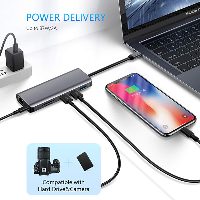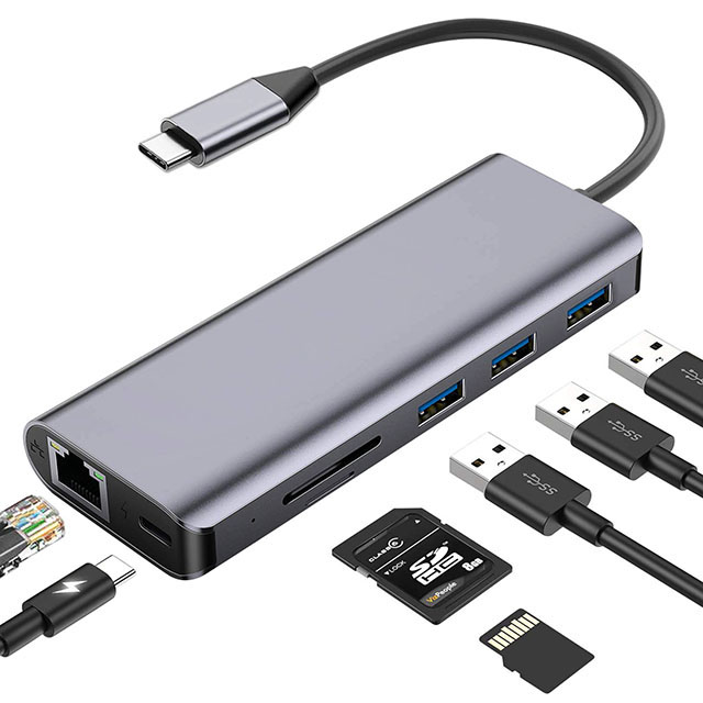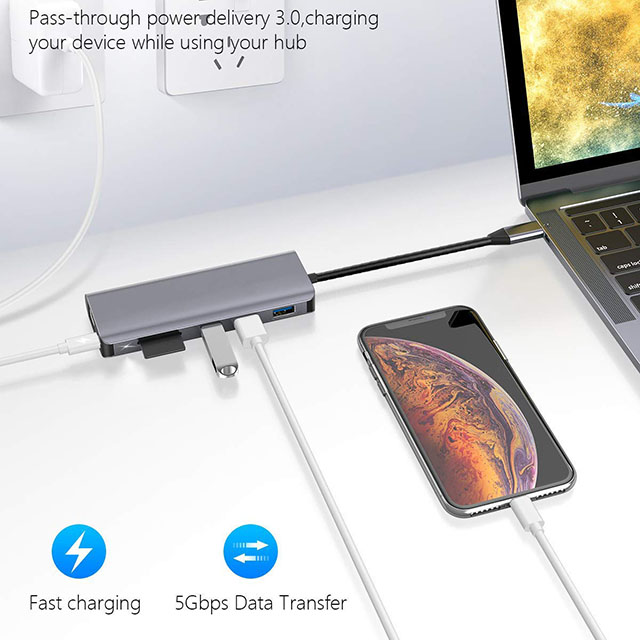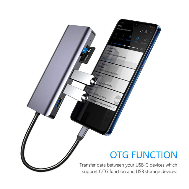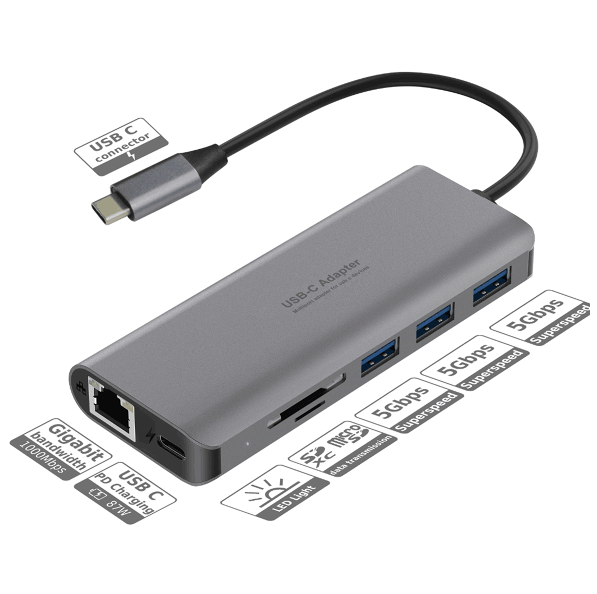 Type C Hub with LED lights, USB 3.0, Super Fast data transfer, 5 ports connect, Aluminum alloy casing