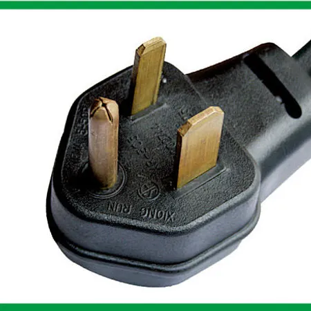 It has a durable casing and is equipped with one round earthing pin and two flat pins.