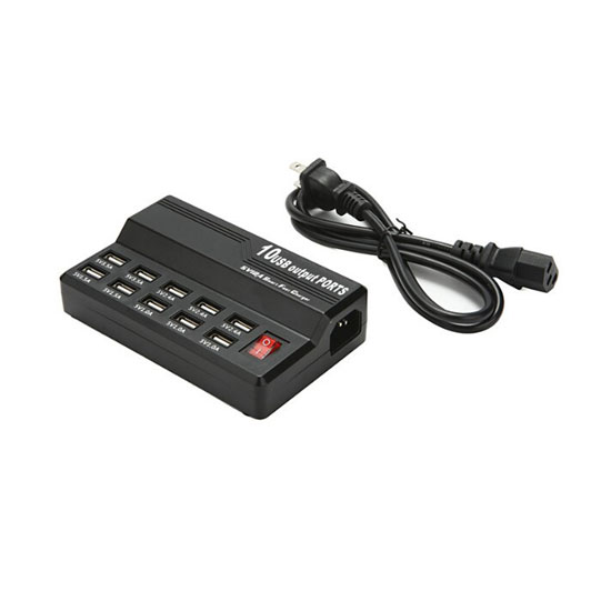 This is a practical USB charger with 10 ports. It comes with a durable housing in black. This charger is completed with a detachable cable for a perfect finish.