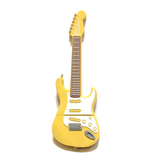 This USB drive in brisk yellow features a guitar shaped design for a unique touch. Professionally engineered, it promises reliable and high-speed data transmission. This compact USB drive makes a practical gift for friends.